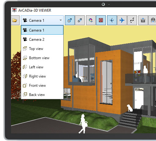 ArCADia-3D VIEWER é um aplicativo gratuito e independente que permite ao usuário visualizar projetos 3D e ter uma caminhada 3D em torno deles sem a necessidade de instalar o ArCADia. É impossível, no entanto, modificar os projetos vistos. O ARCADia-3D VIEWER também pode ser incorporado em uma apresentação salva com o ArCADia-3D MAKER e pode ser lançado com um projeto feito no sistema ArCADia BIM.