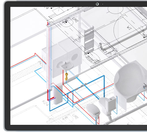 Crie desenhos de forma fácil e rápida usando conexões automáticas de toques de saque com a instalação. Criar cálculos, gerar visualizações axonométricas, verificar a correção em termos de hidráulica e seleção automática de elementos da biblioteca.