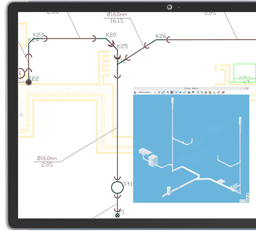 Este módulo destina-se a projetistas de instalações sanitárias e permite a criação de documentação profissional de sistemas de esgotamento sanitário em planos arquitetônicos e de construção.