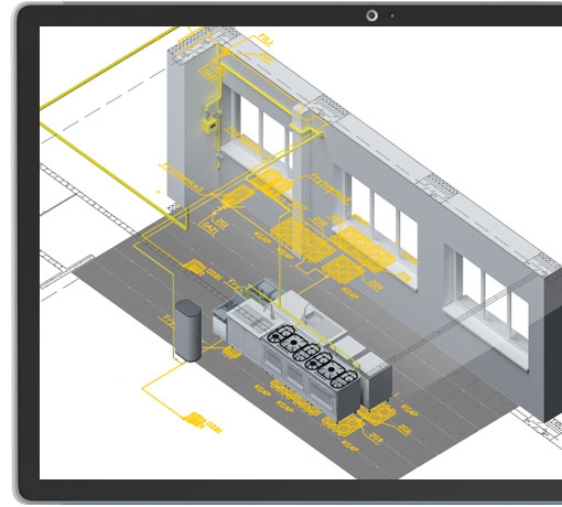 • Criação automática de um desenho do desenvolvimento de toda a instalação de gás projetada.